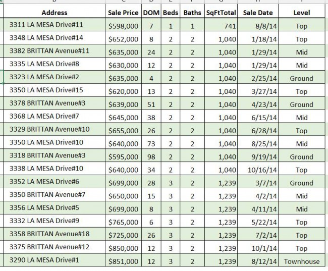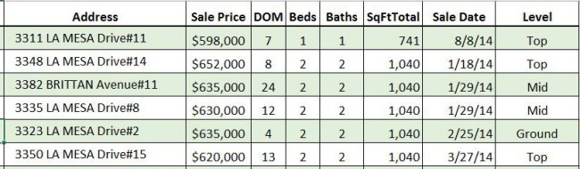 Overall 2/2 condos are now selling in the mid $600K range while 3/2’s are selling in the low to mid $700Ks. The 20 units sold in 2014 included: