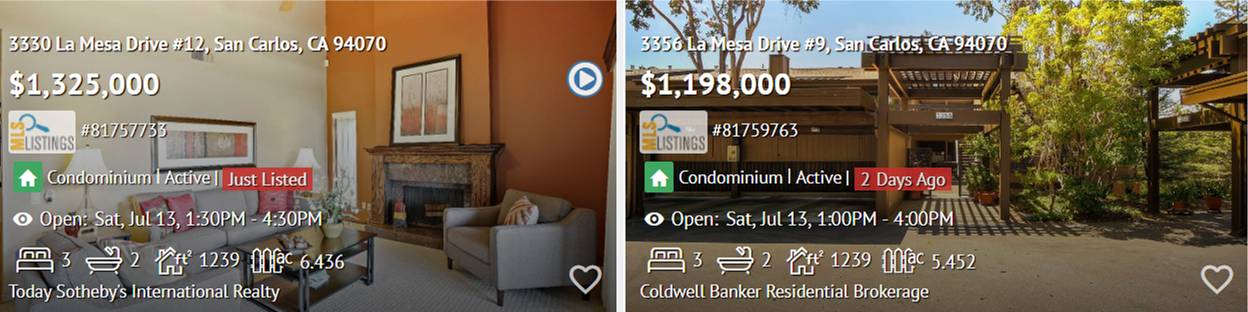 Both of these Brittan Heights units are top level condos with vaulted ceilings. One sits on the edge of the canyon offering residents great canyon views, the other also faces the canyon but there are some structures between it and unobstructed nature.