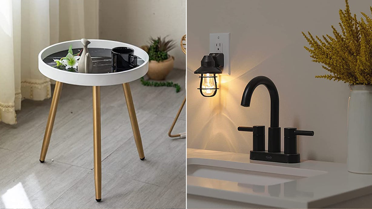 There’s a little something for everyone here, no matter what your tastes are. If mid-century modern decor is your jam, then you’ll absolutely love this industrial gold floor lamp that will run you less than $35. And if you’re a plant lover with a serious green thumb, then this wooden plant stand (for just $15) was made for you and your leafy babies. Or maybe you’re boho royalty looking for some eye-catching wall decor to fill a blank space: Allow me to suggest this set of decorative mirrors shaped like the phases of the moon. Like I said, there’s something for everyone — and all you have to do is keep scrolling to find out.