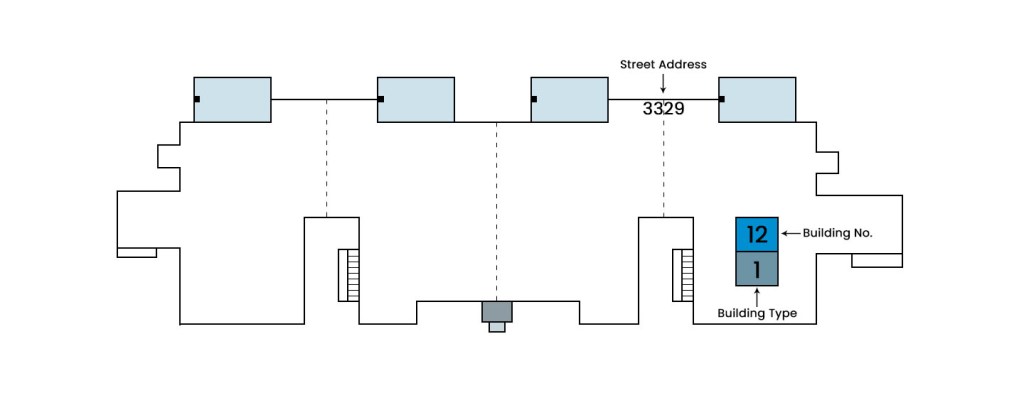 This drawing illustrates how addresses are typically displayed in the Brittan Heights buildings.