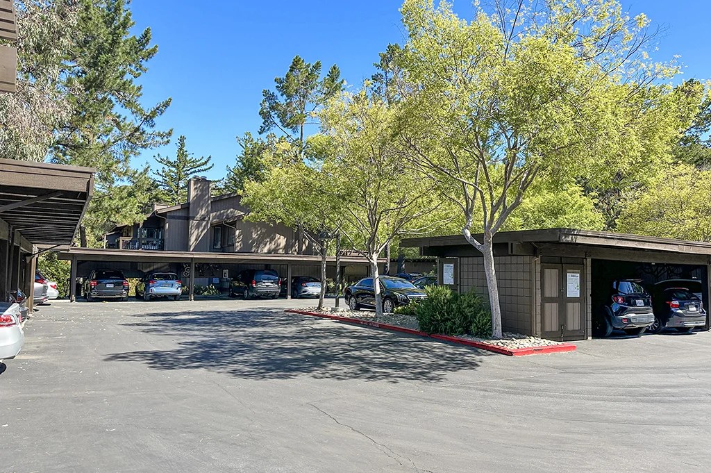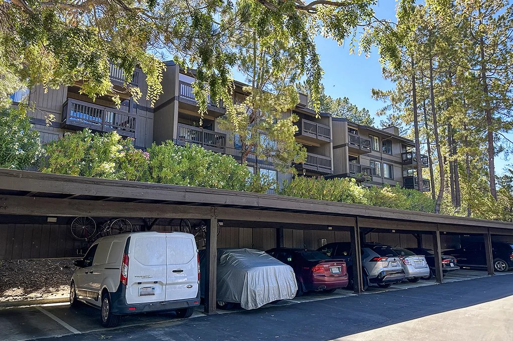 The buildings are typically built into hillsides such that the parking lot is at the same level as the mid-level units.