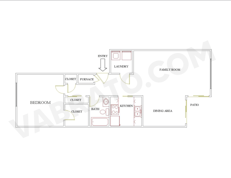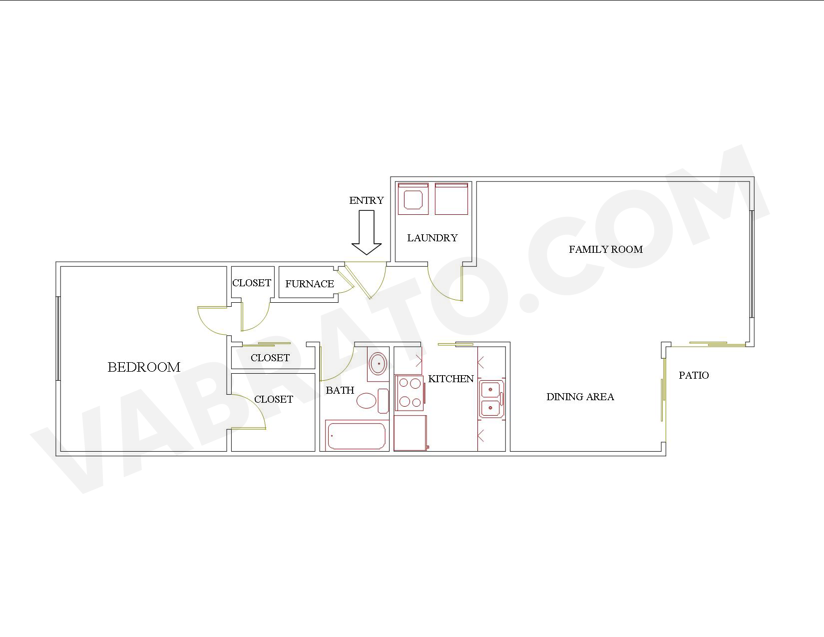 This is the Floor Plan Design for a 1 bedroom, 1 bath condominium at Brittan Heights in San Carlos, which is approximately 740 Sq. Ft. These are really neat little units.